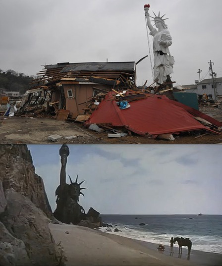 Chacun des exemples évoqués ci-dessous évoque, avec plus ou moins de violence, la vanité de la civilisation (représentée par la ville et la société industrielle) face au réveil de Mère Nature. La profusion de telles images dans la culture populaire aura ainsi grandement nourri une relation de méfiance, voire de défiance, à l’égard de la nature (quitte à tomber dans le délire new age au goût douteux). Ce parallèle entre La Planète des Singes (1968) et le récent séisme nippon symbolise presque à lui seule toute l’importance de cet héritage culturel dans notre imaginaire collectif (via @sandiet)