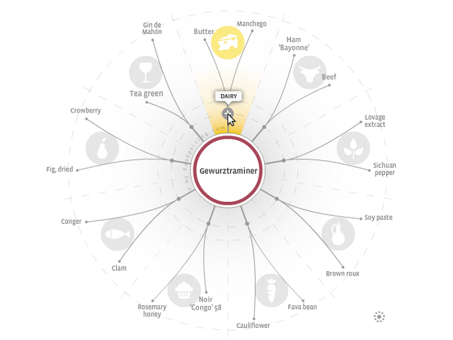 Enfin, bonne nouvelle : la data s’invite à votre table. Pour ceux qui auraient du mal à cuisiner et assortir leurs aliments, l’application par FoodParing vous permet de sélectionner un ingrédient (parmi une centaine dans la version gratuite) et de visualiser avec quel autre type d’aliments (ou de boisson) il se marierait le mieux : plus l’élément est proche, mieux il accompagnera l’ingrédient.