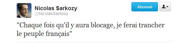 Et voici… la petite affiche de la semaine ! Il s’agit d’une citation de Nicolas Sarkozy lors de son allocution télévisuelle au cours de laquelle il s’est présenté en tant que candidat aux élections présidentielles. Sa citation, la voici :
