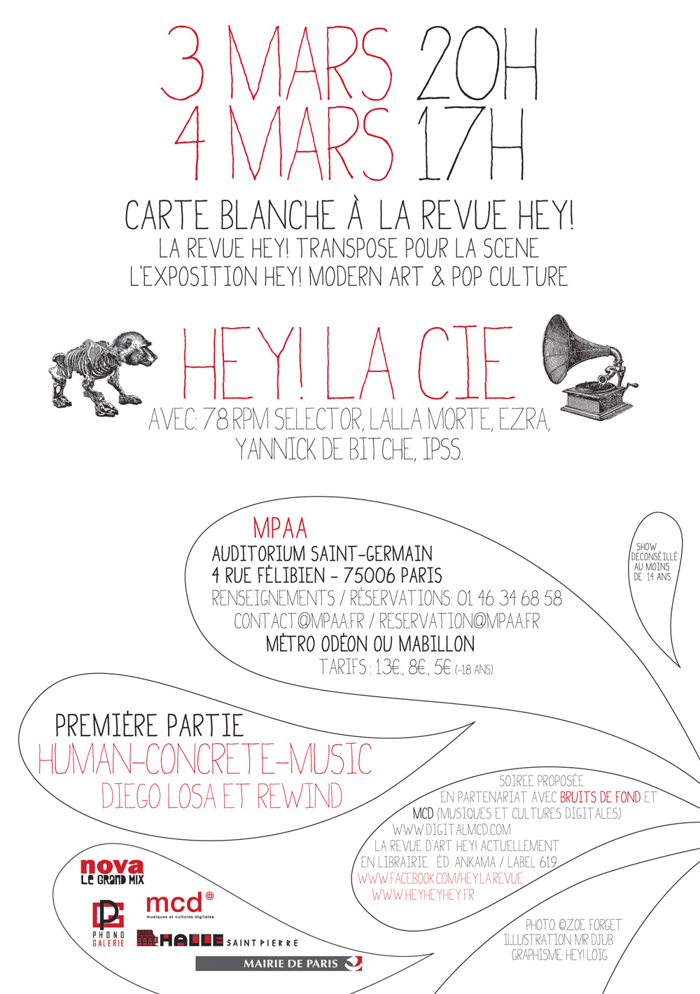Spectacle de clôture de l’exposition avec la compagnie HEY! les 3 et 4 mars à l’auditorium Saint-Germain.