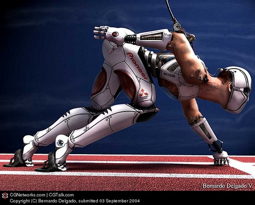 À bien y réfléchir cependant, le dopage – dont le spectre rôde sans surprise toujours sur ces Jeux 2012 – est déjà un élément qui fait penser au cyberpunk, où les humains cherchent à s’améliorer artificiellement par le biais d’implants bioniques ou l’absorption de substances chimiques.